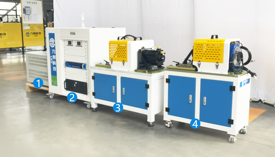 ① 再生电能制动电阻柜 ② 翻盖式控制柜 ③ 机器人关节模组电机对拖测试台 ④ 机器人关节模组电机测试台(磁粉加载)